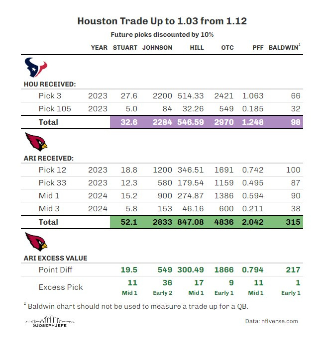 I wanted to take a look at the comparisons in draft value for trades made with Houston and Carolina.